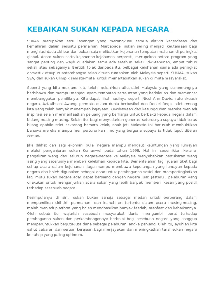 Kebaikan Sukan Kepada Negara Pdf