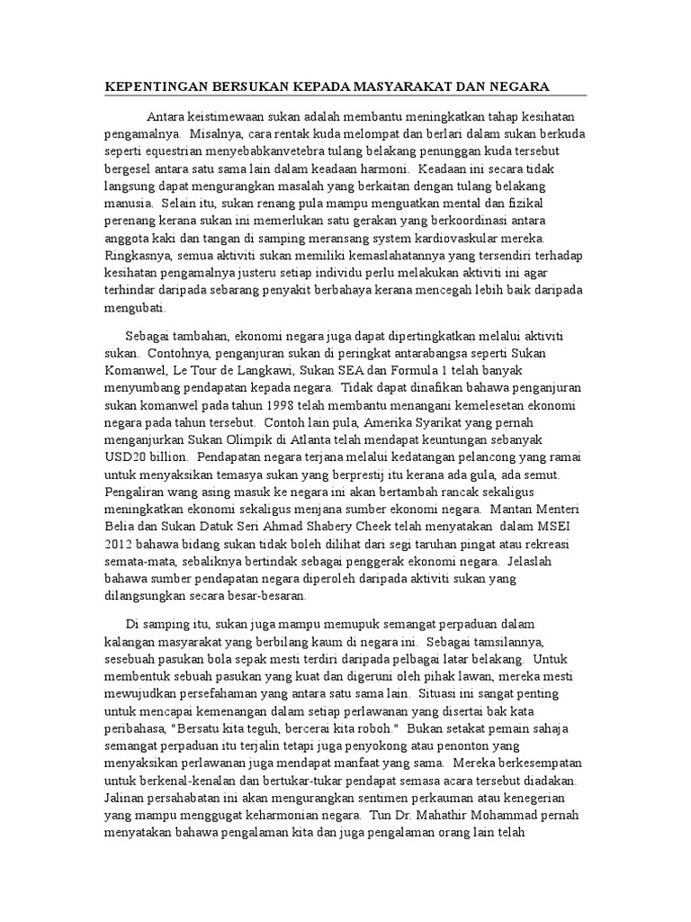 Kepentingan Bersukan Kepada Masyarakat Dan Negara Pdf